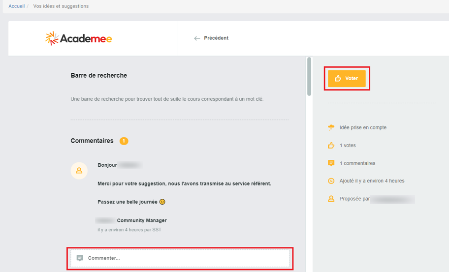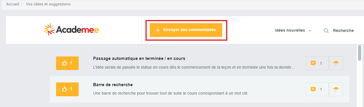 Une fois arrivé sur la page “Vos idées et suggestions”, vous pouvez :
