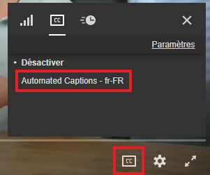 Pour activer les sous-titres sur ces dernières, cliquez sur le symbole “CC”, en bas à droite de l’écran vidéo. Puis sélectionnez “Automated Captions – fr-FR” (ou toute autre indication similaire).