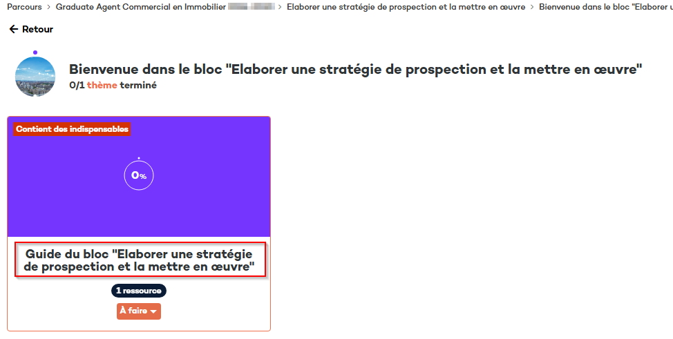 Cliquez sur le bloc de compétence concerné > module “Bienvenue dans le bloc…” > leçon “Guide du bloc [+ nom du bloc]”.